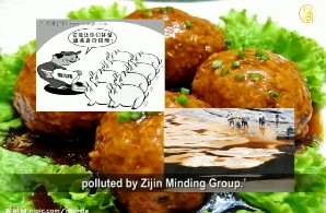 第一道,特色獅子頭。這道菜選用「瘦肉精」餵養的豬肉,並配以「紫金礦業」污染的汀江水烹製而成。