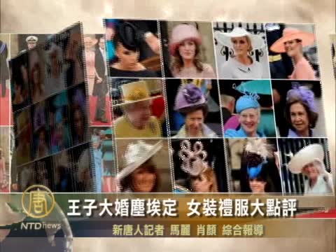 【新唐人2011年5月11日訊】英國王室大婚剛剛過去,很多人還津津樂道這場世紀婚禮。當時多達1900多名來賓,為了在全球幾十億觀眾前展示最佳形象,在衣著上煞費苦心。現在就讓我們就來回顧一下他們精挑細選的華服吧。