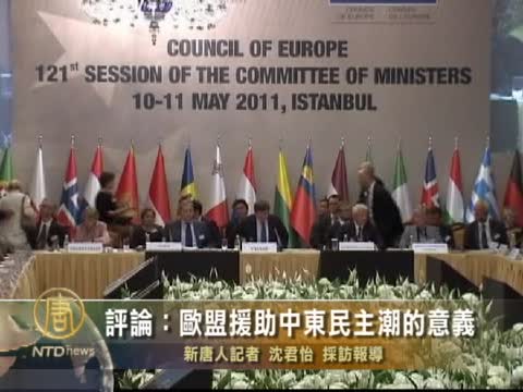 【新唐人2011年5月12日訊】從中東北非地區興起民主化浪潮以來,歐盟國家給予了積極的支持。評論員陳志飛認為,這種支持不僅有助於中東走向民主道路,也有利於歐洲國家自身的安定,同時,對於推動世界範圍內結束獨裁專制趨勢有非常正面的作用。