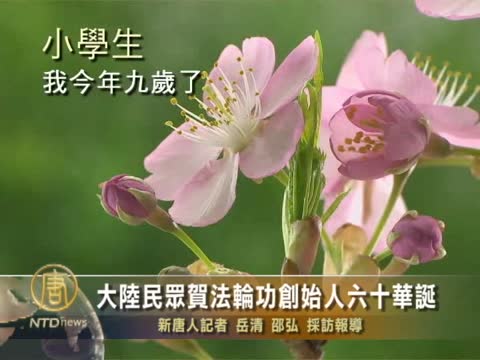 【新唐人2011年5月13日訊】今年5月13日,是第十二屆「世界法輪大法日」,也是法輪功創始人李洪志先生六十華誕。最近,不少大陸民眾紛紛通過本臺向李洪志先生恭賀華誕、表達敬意。請看本臺記者的採訪報導。