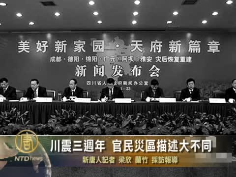 【新唐人2011年5月13日訊】今年5月12日是中國汶川大地震三週年,當局高調宣揚重建成就。然而,有災民卻披露,官員侵吞補償款,打壓維權災民;香港媒體則揭露災區政府濫用港府近百億重建捐款。