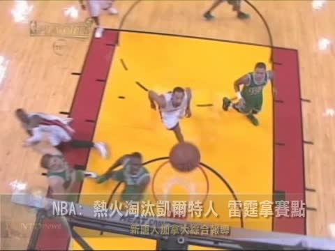【新唐人2011年5月14日訊】在11日(週三)晚進行的NBA季後賽分區半決賽中,邁阿密熱火隊97-87戰勝波士頓凱爾特人隊,晉級東部決賽,俄克拉荷馬雷霆隊99-72大勝孟菲斯灰熊隊,拿到賽點。