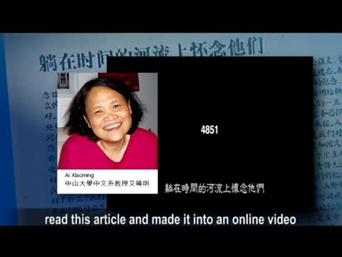 《南方都市報》的這篇社論題為《躺在時間的河流上懷念他們》,中山大學中文系教授艾曉明將這篇文章朗誦後,加上音樂人左小祖咒的配樂,製成短片放到網上。