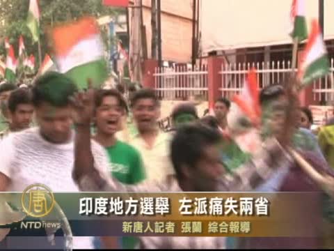 【新唐人2011年5月15日訊】星期五(5月13日)現任鐵路部長班納吉(Mamata Banerjee)領導草根國大黨(Trinamool Congress)在地方選舉痛擊馬克思主義共產黨黨(CommunistParty of Marxist)左派聯盟贏得歷史性勝利。