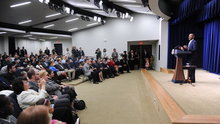 5月11日星期三 歐巴馬來到華盛頓新聞博物館召開了公開會議,討論了就業和經濟問題,並回答了民眾的現場提問。