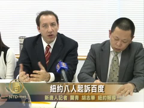 【新唐人2011年5月19日訊】5月18日,紐約的8位民眾召開記者會,宣佈聯名起訴在美國上市的中國搜索引擎公司百度:違反美國法律,限制言論自由;同時控告有政府責任的中國政府。請看詳細報導。