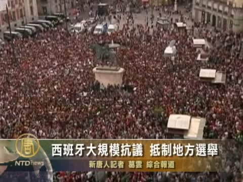 【新唐人2011年5月19日訊】星期三(5月18日),西班牙成千上萬名失業青年佔據了馬德里著名的“太陽門”廣場,抗議目前的經濟危機,並呼籲人們在週日(5月22日)的地方選舉中抵制政治大黨