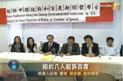 【新唐人2011年5月19日訊】5月18日,紐約的8位民眾召開記者會,宣佈聯名起訴在美國上市的中國搜索引擎公司百度:違反美國法律,限制言論自由;同時控告有政府責任的中國政府。請看詳細報導。