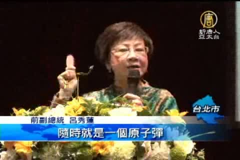 前副總統呂秀蓮推動「救地球、保台灣」全民運動,宣揚環保觀念,呼籲重視核電安全。