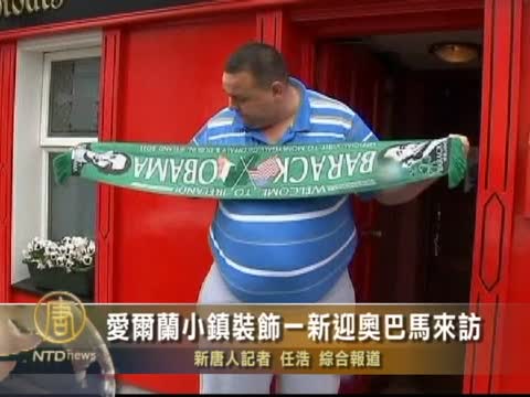 【新唐人2011年5月22日訊】星期六(5月21號),愛爾蘭小鎮曼尼格(MONEYGALL)已經四處飄揚著美國國旗,當地居民們表示,他們已經迫不及待的等著給美國總統奧巴馬送上一千個愛爾蘭式的歡迎,因為歐巴馬的曾-曾-曾祖父,當年是從這裡去的美國。