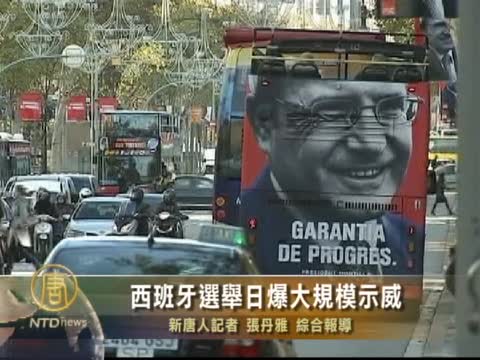 【新唐人2011年5月22日訊】5月22日星期日,西班牙開始舉行地方選舉,雖然當地法令禁止大選期間示威遊行,不過,數以萬計的選民,仍然在選舉日發起大規模示威,抗議高失業率和國家經濟危機。