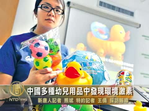 【新唐人2011年5月22日訊】國際環保組織綠色和平,去年在長江的魚類體內,檢出了誘發性早熟的 “環境激素”,今年又在中國多種幼兒用品中發現“環境激素”,擔憂對幼兒可能帶來的健康危害,綠色和平呼籲政府部門對幼兒用品中的化學品從嚴把關。