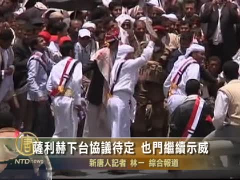 【新唐人2011年5月23日訊】5月22號是業門總統薩利赫(Ali Abdullah Saleh)之前表示要簽署海合會提出的調解協議的日子, 支持和反對薩利赫的人群當天都在首都薩那(Sanaa)的街頭舉行了遊行示威。