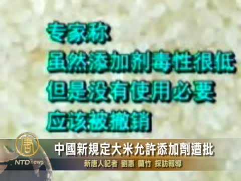 【新唐人2011年5月23日訊】據內地專家透露,新版的《食品添加劑使用標準》,允許大米添加包括防腐劑在內的三種添加劑。專家們認為沒有必要。