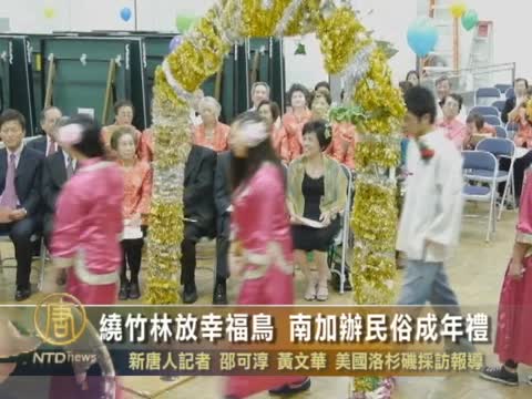 【新唐人2011年5月23日訊】南加州台灣人長輩會主辦的「臺美人民俗成年禮」沿襲古禮,帶領孩子經過八個步驟宣告步入成年,也加深孩子對鄉土的情感。請看洛杉磯傳來的報導。