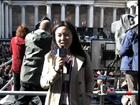 觀眾朋友大家好,我身後的這個臺子呢,等一下,美國總統奧巴馬即將發表演講。之前,很多愛爾蘭的樂隊和人士都在這裡做了精彩的表演。今天上午,奧巴馬總統和第一夫人蜜雪兒到達都柏林機場之後,很快乘坐直升飛機去會見了愛爾蘭總統麥卡利斯女士。之後,他又會見了愛爾蘭首相恩達肯尼。