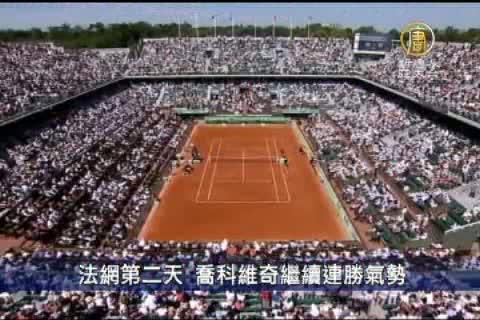 【新唐人亞太台2011年5月24日訊】法網公開賽最被看好的喬科維奇和女子組的夏鳳,在星期一小試身手,丹麥第一種子瓦芝妮雅琪,也順利獲得晉級。帶您來看到比賽的精彩畫面。