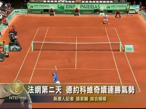 【新唐人2011年5月24日訊】法網公開賽最被看好的德約科維奇(Novak Djokovic)和女子組的斯齊亞沃尼(Francesca Schiavone),在星期一小試身手,丹麥第一種子沃茲尼亞奇也順利獲得晉級。