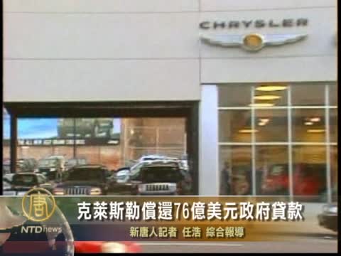 【新唐人2011年5月25日訊】星期二(5月24號),汽車業巨頭之一克萊斯勒集團,宣佈償還美國和加拿大政府在2009年資助它的76億美元貸款。