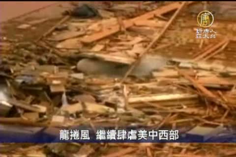 【新唐人亞太台2011年5月25日訊】美國中西部地區飽受龍捲風肆虐之苦。22日遭龍捲風肆虐的密蘇里州 賈普林鎮 災情最為慘重,至今死亡人數已經增到124人。24日,美國中部又受到數個龍捲風侵襲,密蘇里、奧克拉荷馬、威斯康辛和明尼蘇達等州都有災情傳出。