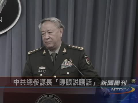 【新唐人2011年5月22日訊】新聞週刊270期在美國訪問的中共解放軍總參謀長陳炳德日前在五角大樓美中聯合記者會上,聲稱對臺沿海地區沒有「導彈部署」,令各界錯愕,被台灣立委斥為「睜眼說瞎話」。陳炳德還說,美國不少國會議員也同意,台灣關係法到了應該重新審視的時候。對此,中華民國駐美代表處的回應是,陳炳德是在「自說自話」。
