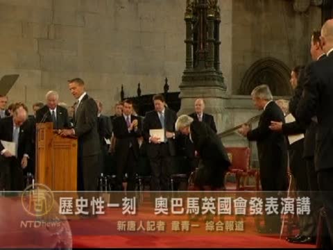 【新唐人2011年5月26日訊】星期三,美國總統奥巴馬到訪英國的第二天,對英國議會上下兩院發表演說,重申美國重視與盟國和與歐洲夥伴國的關係,世界雖然出現了新的超級大國,但美歐依然是全球行動的最大催化力量。美歐必須奮力推動北非和中東爭取民主的運動。奥巴馬成為首位同時對英國上下兩院發表講話的美國總統。