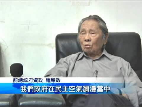 前總統府資政鍾肇政:「如果有人想作這樣的手段來箝制我們的言論自由,不管他後臺有甚麼龐大的東西,我都要堅決的來反對,希望維持我們的自由,我希望一定能夠到這樣地步」