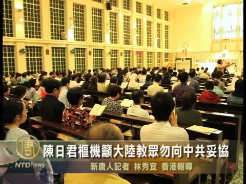 【新唐人2011年5月26日訊】香港天主教陳日君樞機星期二晚上主持教會活動,批評中共非法祝聖主教和大陸教友被壓迫的情況。他坦言教會正面臨前所未有的挑戰,鼓勵大陸天主教眾堅持信仰,勿向中共妥協。