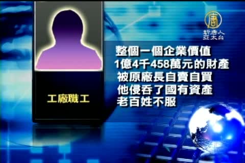 工廠職工:「整個的這個過程,企業破產哪,還是賣呀,這個過程是暗箱操作,就是不公開、不公平、不公正辦的,職工群眾都不知道。」