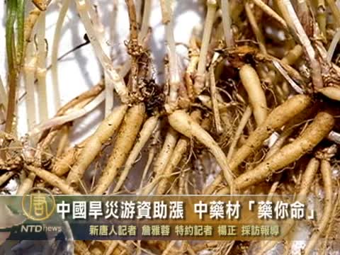 【新唐人2011年5月27日訊】中國中藥材持續瘋漲,一年來漲幅超過100%的多達96種藥材,專家分析,中藥材貴的要命的原因是,種植面積減少,旱災減產以及生產成本提高,加上游資的推波助瀾下,未來仍還有上漲空間。