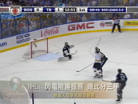 【新唐人2011年5月27日訊】北美冰球聯賽(NHL)25日(週三)晚繼續進行東部決賽的爭奪,坦帕灣閃電隊主場5比4戰勝波士頓棕熊隊,將總比分扳為3平,也把東部決賽拖入第七場的生死決戰。