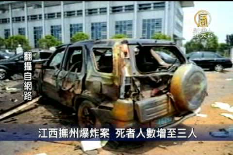 【新唐人亞太台2011年5月27日訊】中國江西撫州市5.26連環爆炸案,目前據官方消息,死亡人數增加至3人;官方稱引發爆炸事件的主嫌是上訪多年的被強遷戶錢明奇,而他也在爆炸中死亡。目前民間對錢明奇的遭遇多抱持同情態度,認為是典型的官逼民反。