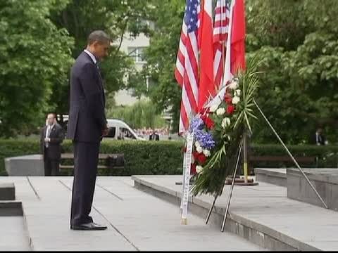 美國總統奥巴馬參觀了二戰期間波蘭士兵的紀念碑,並到大屠殺死難者紀念碑前敬獻花圈。他在紀念碑前默哀一分鐘,然後和猶太社區的成員交談。