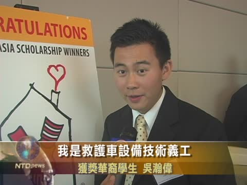 獲獎華裔學生吳瀚偉:“我是救護車設備技術義工,我通常坐在救護車裡,我也在高中暑期音樂項目中做義工,我是小提琴和鋼琴指導老師,我也是自己高中交響樂團的助理指揮。”