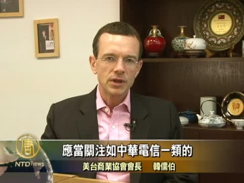 美臺商業協會會長 韓儒伯:我認為台灣政府、特別是台灣人民應當關注那些重要的大公司--如中華電信,如何處理其在兩岸的利益,以保證他們的在臺利益和對台灣的責任很適當的保持下去。因為他們需要繼續為台灣提供重要的公共服務,以保證台灣民主繼續發展。
