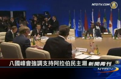 27號,八國集團高峰會議在法國北部渡假勝地杜維爾閉幕,八國首腦發表聯合聲明,強烈譴責一直暴力鎮壓民眾的敘利亞和利比亞領導人,一致呼籲卡扎菲下臺。同時提出一項200億美元的援助方案,支持北非和中東阿拉伯國家的民主政治改革。為期兩天的峰會討論了日本核危機處理情況,世界經濟,以及國際貨幣基金組織新總裁選舉等問題。互聯網問題今年第一次列入G8峰會的議程。