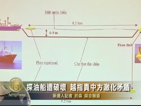 【新唐人2011年5月30日訊】5月29號,越南當局就中國巡邏艇在南中國海干預越南探油船只的事件召開新聞發佈會,譴責中方此舉激化地區矛盾,並表示越南海軍將採取一切行動維護越南的領土完整。