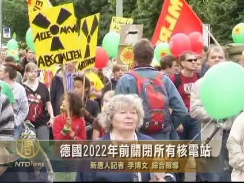 【新唐人2011年5月30日訊】德國政府星期一(5月30日)宣佈,將在2022年前關閉國內所有的核電站,這樣德國將