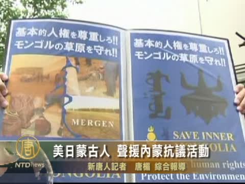 【新唐人2011年5月30日訊】中國內蒙古抗議活動延燒至海外。包含北美地區和日本的蒙古人都在當地的中國使領館前舉行示威,聲援內蒙古連日來的抗議活動。