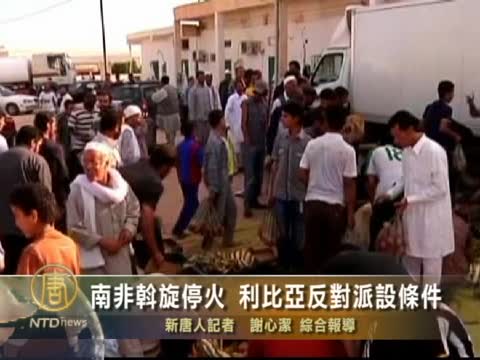 【新唐人2011年5月30日訊】利比亞反對派與總統卡扎菲部隊的戰事已長達三個多月,星期一(5月30日),南非總統祖馬(Jacob Zuma)代表非洲聯盟到利比亞進行調停,不過,利比亞反對派堅持若要和談,前提是卡扎菲必須下臺。
