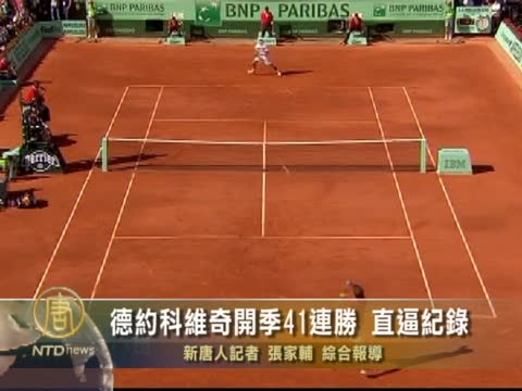 【新唐人2011年5月30日訊】捷報頻傳的德約科維奇以開季41連勝的氣勢,和老將「瑞士特快車」費德勒一同進入法網四分之一決賽,女子組方面,意大利女子選手斯齊亞沃尼和俄羅斯的帕芙尤申科娃順利獲得晉級。