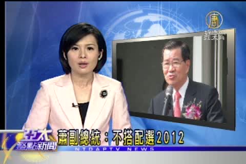 【新唐人亞太台2011年5月31日訊】好,謝謝吳教授的分析。副總統蕭萬長在今天(31號)傍晚,親自召開記者會表示,不再搭配參選 2012年總統大選,蕭萬長說,基於世代交替,已經在4月下旬跟總統馬英九商定,等到明年5月任滿,將歸隱林泉,實現當初只做一任的承諾,不過他表示,自己仍會協助輔選工作。馬總統也發表聲明表示,尊重蕭副總統的意願,至於副手人選會於6月25日18全會之前定案。