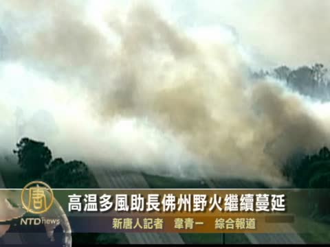 【新唐人2011年6月1日訊】由於高溫、乾燥和多風的天氣,美國佛羅里達州持續一週的野火週二(5月31日)繼續燃燒,迄今已經摧毀了數百英畝的土地,並威脅到一些人口稠密的地區。