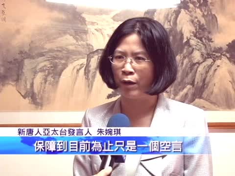 新唐人亞太臺發言人 朱婉琪:「我們知道吳院長已經代表了政府,告訴我們,政府願意提供新唐人言論自由跟新聞自由的保障,可是我們發現,保障到目前為止只是一個空言,目前還沒有落實,不管是在中華電信執行層面上面,或者是在NCC調查方面,到目前為止,我想我們真的是非常焦急等待。」