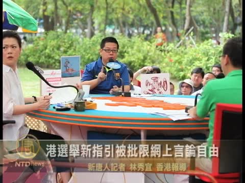 【新唐人2011年6月1日訊】香港區議會選舉將於11月舉行,選舉管理委員會上週建議修訂選舉活動指引,當中包括規定網上電視、電臺的節目,都要遵守所謂的平等時間原則。日前在一個論壇上,與會者指責當局借選舉條例規管互聯網,打壓言論自由。
