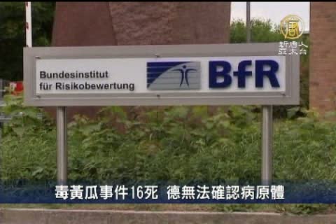 【新唐人亞太台2011年6月1日訊】來關先國際重要訊息。德國“毒黃瓜”事件可能涉及的大腸桿菌疾病星期二(5月31日)在德國再添一死亡案例,包括德國以外地區的首起死亡個案,使死亡總數已達16人死亡、超過1000人受傳染,目前已經蔓延歐洲多國,但德國衛生官員仍然無法確定此致命大腸桿菌的病原攜帶體,這病原體可能涉及毒黃瓜。