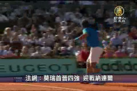 【新唐人亞太台2011年6月2日訊】星期三(1號),法國網球公開賽第11天,在男單八強賽中,頭號種子西班牙球王納達爾以6-4 、6-1、7-6擊敗瑞典悍將索德林,晉級四強。
