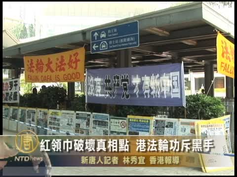 【新唐人2011年6月3日訊】香港法輪功學員在景點設置的真相點及退黨服務點,星期三接連遭到配戴紅領巾的大陸小學生乘坐旅遊巴到來進行破壞。法輪功學員強烈譴責中共當局利用小學生作案,要求港府徹查事件,將主犯與幕後黑手繩之以法。