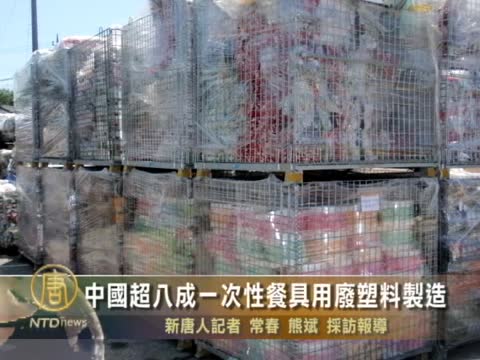 【新唐人2011年6月3日訊】中國一次性餐具被爆使用廢塑料生產,專家指出,在利益驅動和監管不力下,中國超八成一次性餐具用廢塑料製造,廢塑料含有毒的致癌物,加工中所添加的螢光增白劑也是一種致癌物,能危害人體健康。
