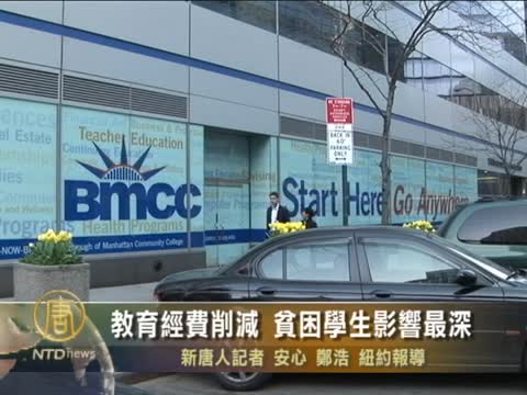 在市長彭博的預算案中,市立大學的預算將削減5260萬美元,對於社區大學的課程的削減達2590萬美元。其中的一些獎學金和政府教育補助金也將取消。參加集會的紐約市立亨特學院學生李惠玲依賴於學校的獎學金和助學金,教育經費的削減對她影響很大。